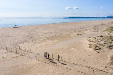 Amb unes aigües cristal·lines i sorra fina, la platja és perfecta per prendre el sol, per banyar-se i refrescar-se, per jugar a voleibol de platja i, per descomptat, per construir castells de sorra! Prop del càmping, al nord i al sud de la badia, també podreu explorar les cales amagades i els impressionants paisatges de la Costa Brava.