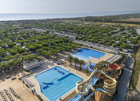 It offers numerous leisure and sports facilities, having a lovely water park equipped with 4 pools and 5 water slides, offering you a wide ranges of pitches and comfortable accommodation.