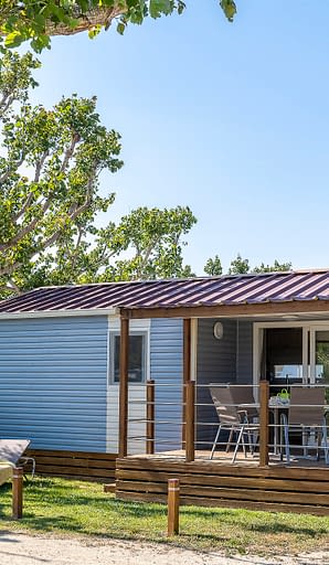 For camping enthusiasts, we offer spacious and shaded pitches, ideal to pitch your tent or set up your caravan or camper. You can take advantage of the campsite’s convivial atmosphere, whilst enjoying all the modern facilities on hand. Should you be seeking a little more comfort, our mobile homes and bungalows are an excellent option. This fully equipped accommodation offers comfortable living spaces, separate bedrooms, a functional kitchen and private bathroom.