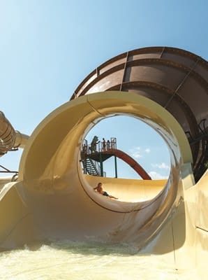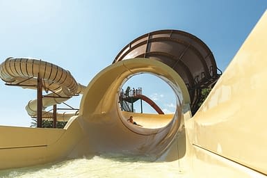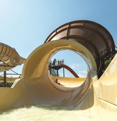 Los toboganes están ubicados junto a la gran piscina principal, lo que permite que los padres puedan relajarse mientras los niños se divierten. Todos los toboganes están construidos bajo los estándares de seguridad más exigentes y supervisados por socorristas profesionales durante todo el día.