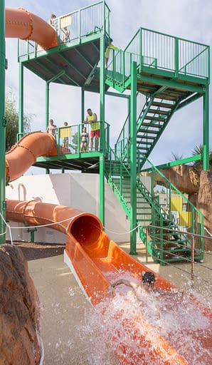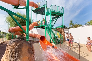 Onze meertalige instructeurs zijn verantwoordelijk voor het begeleiden van uw kinderen als ze in alle veiligheid van de waterpret genieten. In het water hardlopen, races… Er is genoeg te doen voor alle leeftijden en smaken. Bovendien is ons waterpark volledig uitgerust voor urenlang gezinsplezier met zijn glijbanen, peuterbad, waterstralen…